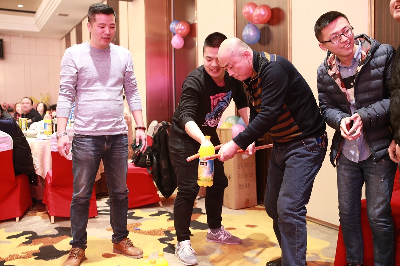 本次年会为员工提供了特等奖1名(5000元现金红包)、一等奖5名(华为最新AI旗舰MATE10手机)、二等奖10名(科沃斯智能扫地机器人及华为平板电脑)、三等奖50名(500元购物卡),游戏和抽奖在年会精心设置的各个环节以及热烈的气氛中有条不紊地进行着。《筷子大运输》、《传递默契》、《齐心协力》三个巧妙的趣味游戏,让各个部门的员工代表有了一个相互PK的机会,对游戏参与者的协作与默契提出了较高的要求,台下同部门的员工纷纷摩拳擦掌,恨不能助一臂之力,场面诙谐火爆。市场部的精英们还为年会精心准备了歌曲合唱和小品《孙总成长记》两个节目,《孙总成长记》以孙总从事销售工作一路而来的成长经历中的趣事为素材,通过朱淙亮、崔勇诙谐默契的演绎,惹得台下的观众忘情地开怀大笑,拍掌叫好。但笑过之后,却也能从小品中深刻了解体会到成长为一名优秀的业务精英是何其艰难。